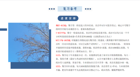 张玺晗同学分享了她的宝贵的考研专业课及公共课经验的同时,强调结合自己的兴趣和实力选择报考院校及专业,要坚定目标,持之以恒地做好课程复习,安心备考,全力冲刺,要注重学习方法,科学合理规划复习时间。