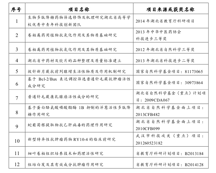 2、近三年来,工程技术研究中心药物研发实验室主要以天然药物活性成分确定、筛选、机理研究等方面为主,取得多项国家、省、市级科研项目,具体明细如下: