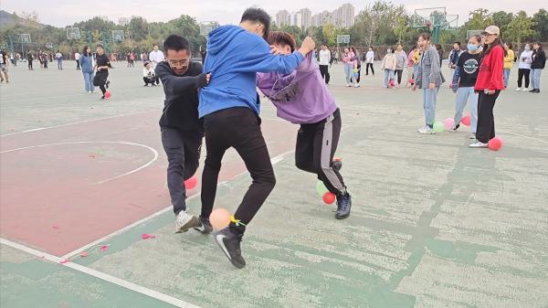 最后的压轴游戏是既刺激又激烈的“气球大作战”,两队队员脚上都绑一串气球,比赛开始后,各自队伍都要踩破对方队伍脚上的气球,同时也要保护自己脚上的气球不要被踩破,在规定时间及局域内,看各队保护的气球数量,多者获胜。在一声声气球的爆炸声中,也将今天的活动推向了高潮,场上的成员,神采奕奕,你追我赶,进退自如,团队之间默契神会,精诚团结,展现了yl7703永利学子的活力和积极向上的精神。本次活动采用记分制,活动结束后,累计总分最高队获胜,得分最低组将受到被指定动作拍照的惩罚。在活动结束散场时学生干部们自觉将场地上的垃圾打扫干净,体现了yl7703永利学生干部的素质和修养。