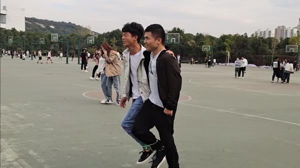 在活动正式开始之前,先通过“认人游戏”来了解同组成员,在这个热身游戏中,拉近了彼此的距离,极大地调动了成员活动的热情。经过一轮热身后,比赛正式开始。第一个项目是“五毛一块”,游戏一共6轮,每队派出4人,大一的学生干部为五毛,大二大三的学生干部为一块,主持人向同学们说明规则后,游戏正式开始,同学们围成一个圆圈,在发号施令后"抱团"开始,为了防止被淘汰,他们在游戏开始前就串通好,结了盟,在游戏过程中,随着淘汰人数逐渐增加,更是肆无忌惮的和其他组抢人,可既是游戏终有输赢。在游戏决出胜负后,紧接着是“两人三足”和“你划我猜”两个考验团结协作和默契配合的游戏,前者是将两人其中一只脚绑在一齐,一声令下,两颗心,三条腿,一起冲向终点;后者则通过简单的肢体动作,让队友猜到心里的词语。