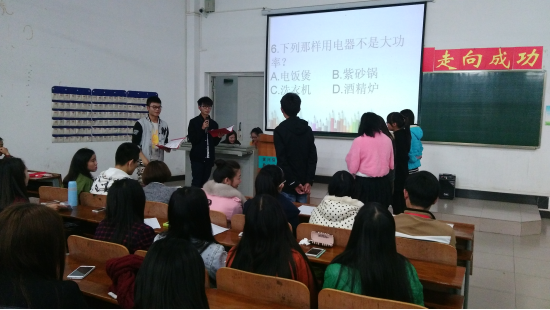 首先,让我们走进第一个环节:寝室文化知识竞答。本项目是由寝室长参与抢答,并有一次机会场外求助,故 经过本次激烈的竞赛,不仅使同学们从中获得了乐趣,并从中学到了知识。之后,第二个环节是:寝室文化衫的展示。本环节是将寝室分组,并由各寝室代表向大家介绍自己的寝室成员及解释文化衫寓意,并用幻灯片展示了自己寝室的风格,用解说表达了自己寝室的魅力。在每组寝室展示完之后由各评委点评,主题表达要营造出健康、文明、活泼、向上的学习、生活氛围,培养学生“团结协作、自我设计、自我展示”的能力。