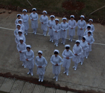 下课铃声才刚刚响起一会儿,就有部分的女生提前赶到了生科一楼。为了不因为吃晚饭而耽误时间,导致视频的拍摄时间拖迟,才刚下课的她们顾不得吃饭,就背着包急急忙忙的赶到了约定地点,迅速为即将开始的视频拍摄做准备工作。踏入教室的她们来不及歇一口气,就开始换上护士服,盘起头发。才过了十几分钟,教室里就像白天被洒进来一缕阳光似的,给人一种眼前一亮的感觉。穿上护士服的同学们,都俨然是一群从天而降的白衣天使,这使她们都显得十分的吸引人。此刻的她们,心里应该也为非常自豪。大家都准备就绪后,拍摄工作就正式开始了。将自己的衣着整理整洁后,确定没有问题了,大家就按照学姐们的指导排成需要的形状,面带微笑的她们在黄昏霞光的映衬下,显得格外的美丽。对于拍摄的各种要求,大家都十分的配合,都想将自己最好的一面呈现出来。当拍摄者准备好后,大家便默契度爆棚似的一齐面带微笑的喊着“茄子”。相比于拍摄之前准备时间的十几分钟,真正的拍摄时间其实只需要那么几分钟而已,但是大家都还是特别的开心,为了那几分钟镜头凝固下来的美好!